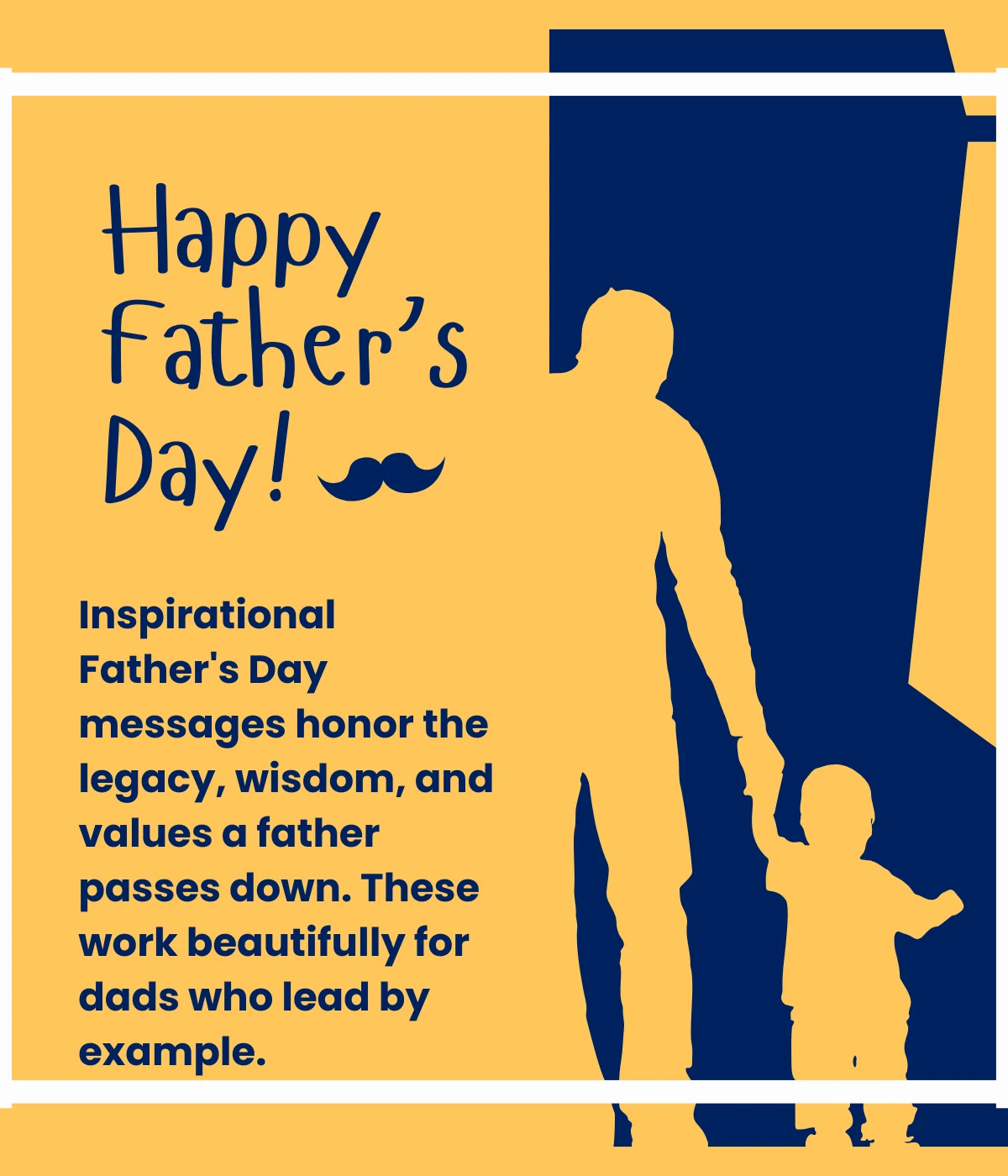 Inspirational Father’s Day messages honor the legacy, wisdom, and values a father passes down. These work beautifully for dads who lead by example.