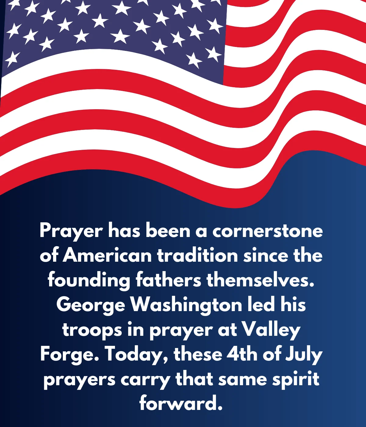 Prayer has been a cornerstone of American tradition since the founding fathers themselves. George Washington led his troops in prayer at Valley Forge. Today, these 4th of July prayers carry that same spirit forward.