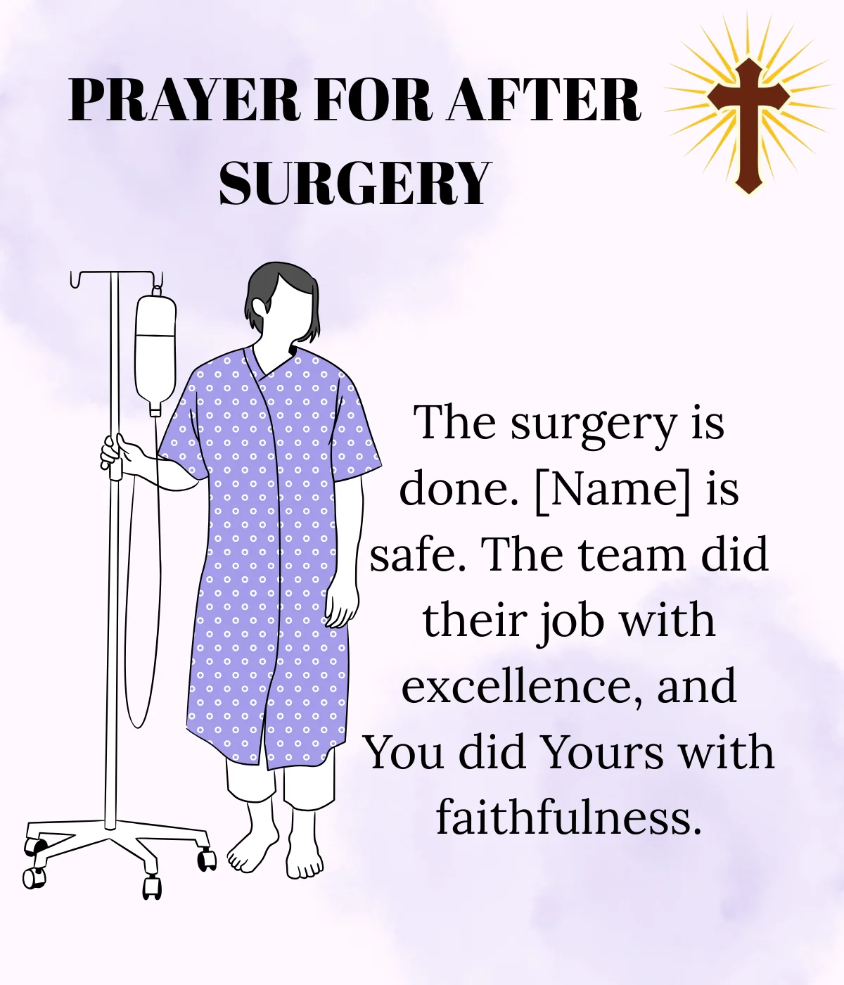 After the surgery, prayer becomes a quiet covering of peace—asking for healing, strength, and a smooth recovery ahead. It is a gentle way to thank God for protection and to trust Him with every step of the healing process.