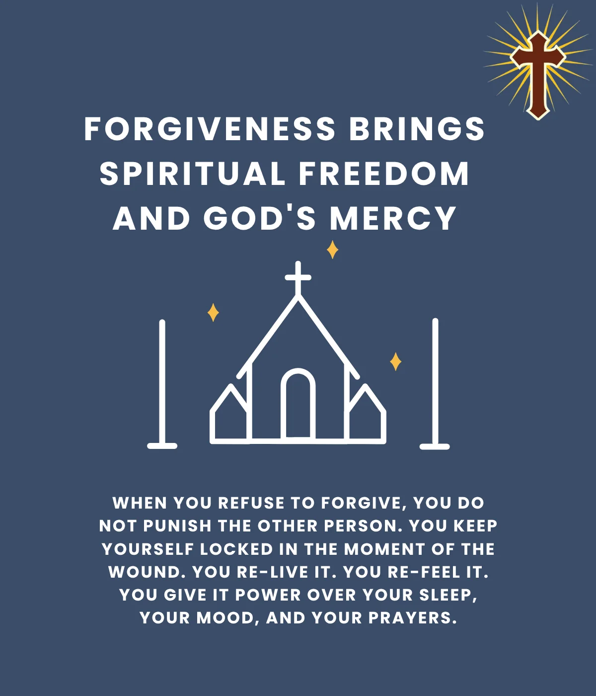 When you refuse to forgive, you do not punish the other person. You keep yourself locked in the moment of the wound. You re-live it. You re-feel it. You give it power over your sleep, your mood, and your prayers.