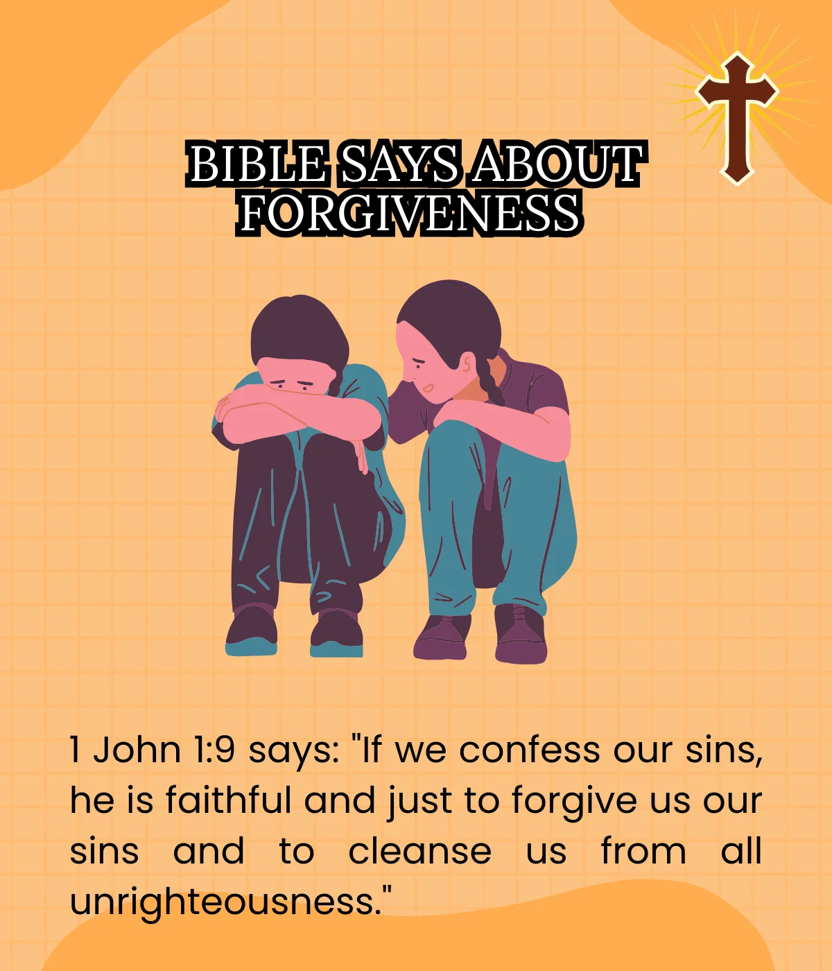 1 John 1:9 says: “If we confess our sins, he is faithful and just to forgive us our sins and to cleanse us from all unrighteousness.”