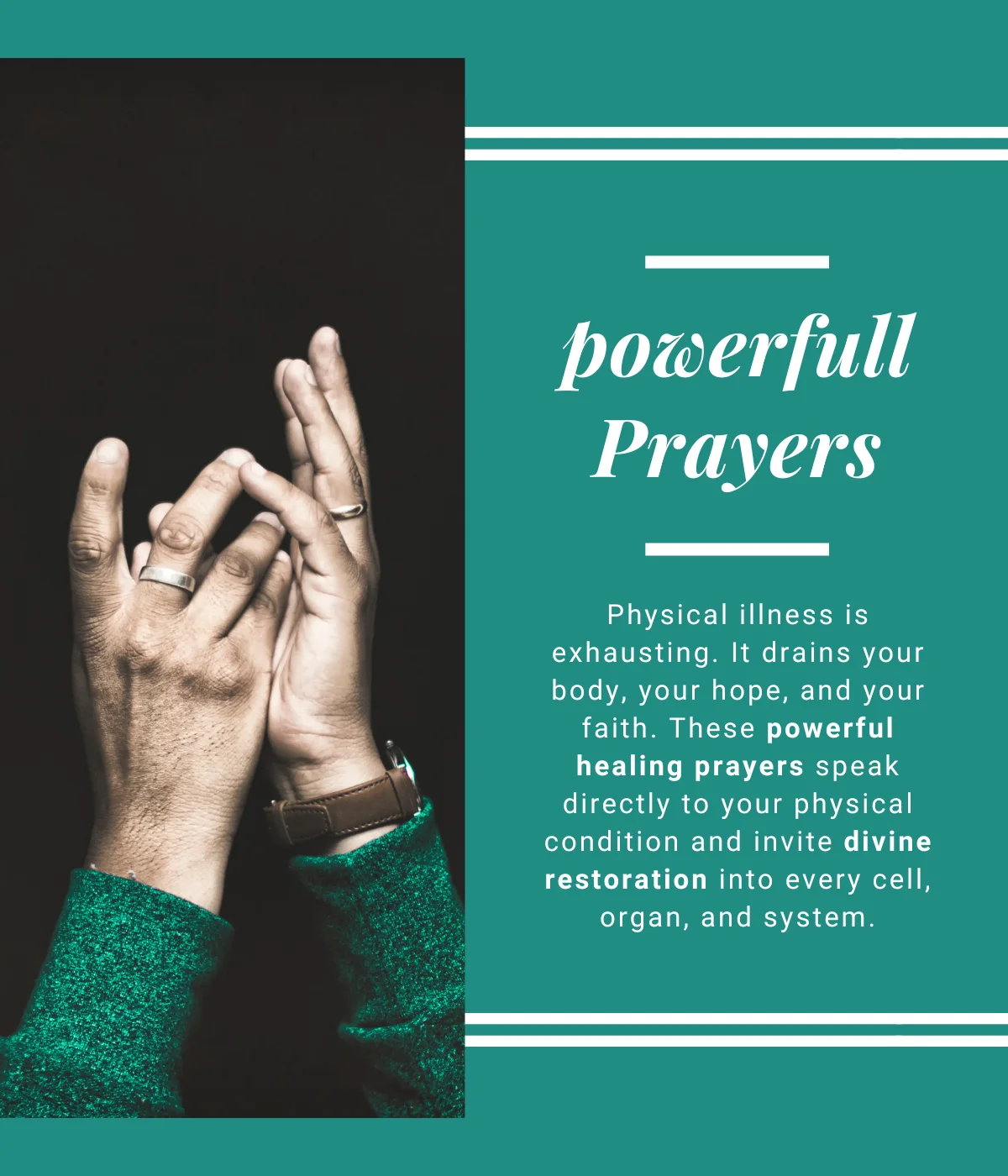 The most powerful healing prayer is one prayed in genuine faith, aligned with Scripture, and surrendered to God’s will — combining trust in His power with acceptance of His wisdom and timing.